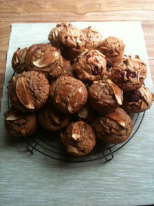 It was so nice to be cooking again! The Banana bread came out really well. The muffins I based on a basic recipe I found on the internet, propped my iPhone up on the bench and got to baking! Low fat wholemeal apple, walnut & cinnamon and raspberry & almond muffins. The apple ones were the best. The raspberry ones weren’t so good but we ate them anyway.