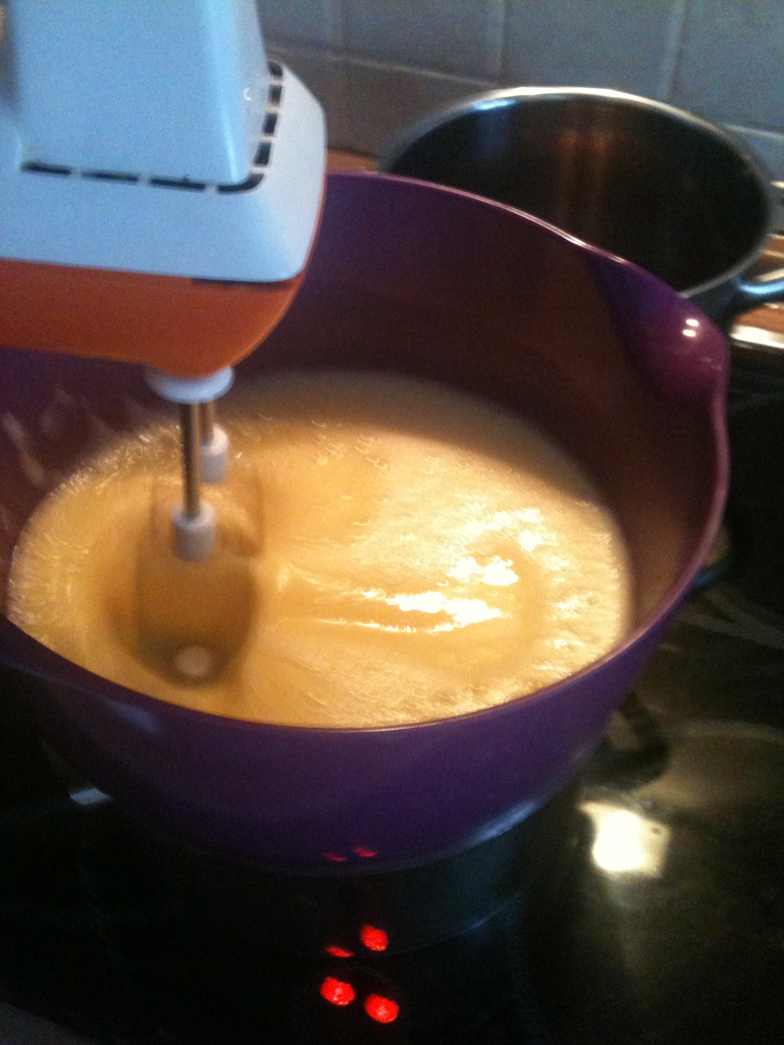 The recipe said ‘whisk’ here, I started whisking, then gave up, then kept whisking thinking I really wanted to follow the recipe, then gave up and continued with the electric beaters. It took a long time! I don’t know who could whisk it.