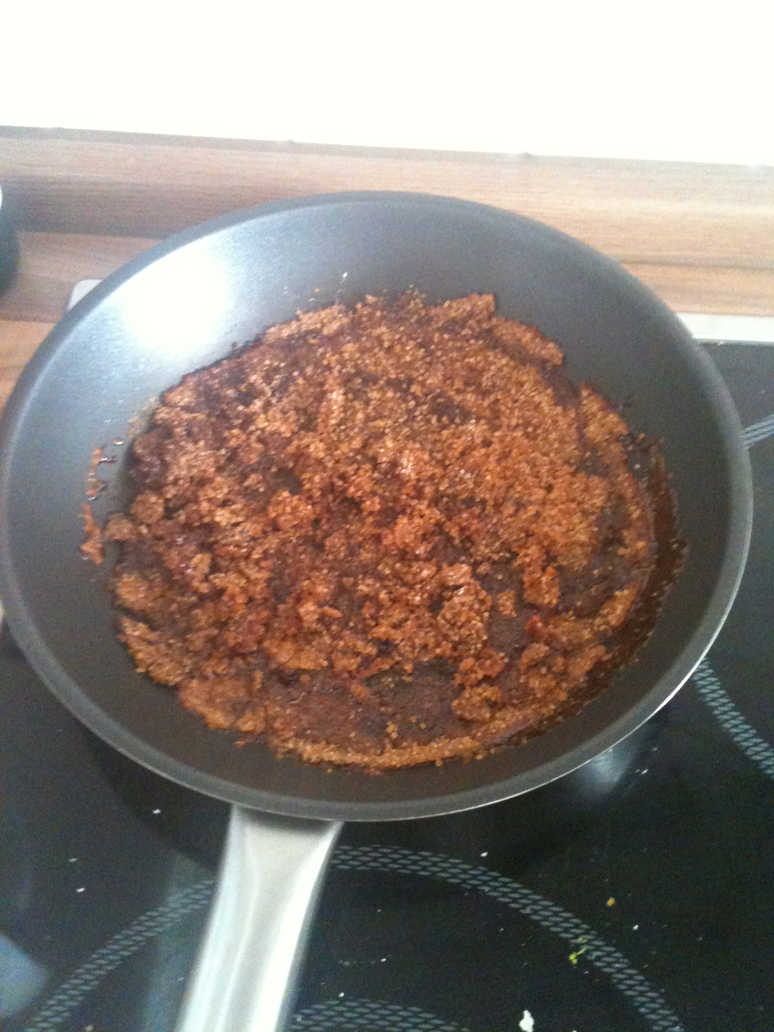 I was using organic raw sugar as I’ve not yet found organic white sugar here. I’d like to blame this on the fact that I burnt it – the sugar was already caramel coloured, I couldn’t tell when it was ready! Not really a good enough excuse though. After an hour I gave up on the first batch and decided to try again.