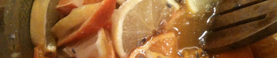 Anyway! I went straight in as I tend to do, without a recipe, chopped some left over lemon, two old oranges, an old mandarin and what turned out to be a clementine (skin on) and threw it all into a saucepan over medium heat. I collected up all the pips, and not having any muslin cloth or a suitable strainer I fished around and found a ‘gift’ tea portion wrapped in some kind of net cloth with a ribbon and figured that would do. Put the tea in my cup ready for Tuesday morning and tied up the pips in the little synthetic and probably not entirely suitable for the purpose piece of material.